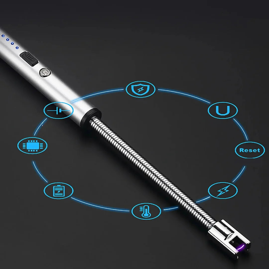 Experience a safer, more convenient way to light candles, stoves, BBQs, and more with this modern USB rechargeable arc lighter!